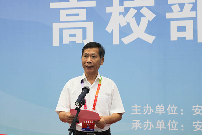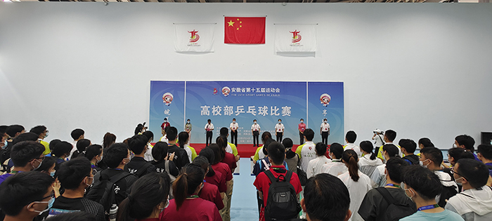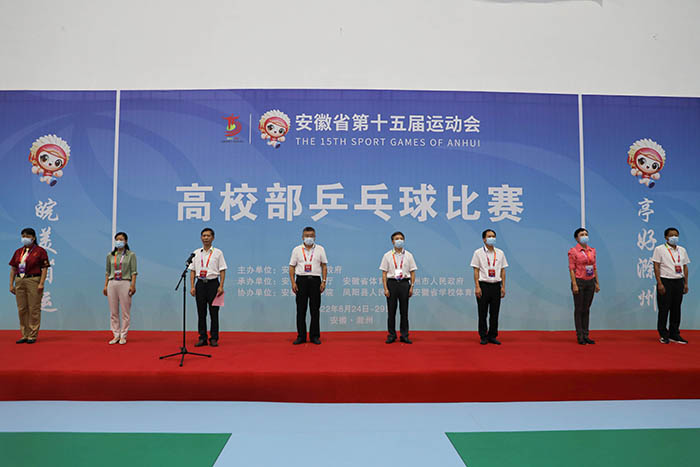 蒋德勤在致辞中代表半岛app官方在线入口党政领导及18000多名师生员工向莅临我校的领导、来宾及全体运动员、教练员、裁判员表示诚挚的欢迎;向省运会组委会、省委教育工委省教育厅、省体育局、滁州市委市政府和凤阳县委县政府对于本届赛事的大力支持,表示衷心的感谢;向志愿服务人员和关心支持本届赛事的社会各界人士,致以崇高敬意;他介绍了我校的改革发展和办学成果情况,他表示,学校在省运会组委会的领导下,把协办好第十五届省运会高校部乒乓球赛事作为学校的重点工作和民生工程,齐心协力营造环境氛围,精致强化服务保障,努力奉献一届保障有力、充满活力、精彩纷呈的高校部乒乓球赛事。希望各位领导和来宾对我校事业发展给予帮助和指导,共叙校际友情;希望全体参赛人员,能够展现出精湛的技能和良好的风貌,取得比赛成绩和精神文明的双丰收;希望在常态化疫情防控时期,全体参赛人员、志愿服务人员、工作人员,加强自身疫情防控,确保赛事安全。