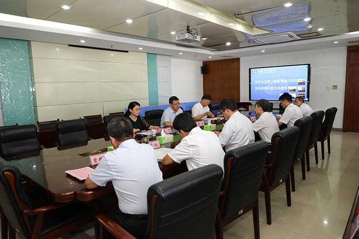 8月24日下午,受省委教育工委委托,安徽师范大学党委副书记周旭,安徽工业大学党委常委、宣传(统战)部部长黄勇,安徽机电职业技术学院党委副书记刘艺莅校实地考察我校第二届安徽省文明校园创建工作。党委书记蒋德勤,党委委员、副院长黄远友,党委委员、纪委书记、监察专员王强,学校相关职能部门负责人参加汇报会。