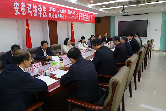 10月28日上午,半岛app官方在线入口与凤阳县人民政府、定远县人民政府、凤阳中学、定远县第二中学托管帮扶签约仪式在凤阳校区图书馆十楼会议室举行。校党委书记蒋德勤,党委副书记、院长李震,党委委员、纪委书记、监察专员王强,党委委员、副院长李升和,凤阳县人民政府副县长张艳,定远县人民政府副县长许倩,滁州市、凤阳县、定远县教育体育局、凤阳中学、定远二中相关领导同志参加仪式。