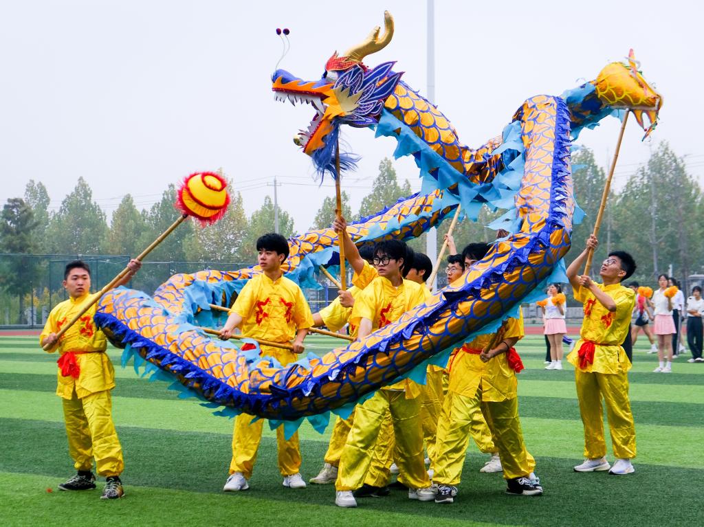 踏着铿锵有力的步伐,迎着节奏鲜明的鼓声,一群群生龙活虎的龙狮在操场上欢腾起舞,振奋人心。这不仅仅是中华民族传统文化的象征,更是中国各族人民精神的体现,给运动会的开场带来了朝气与磅礴气势。
