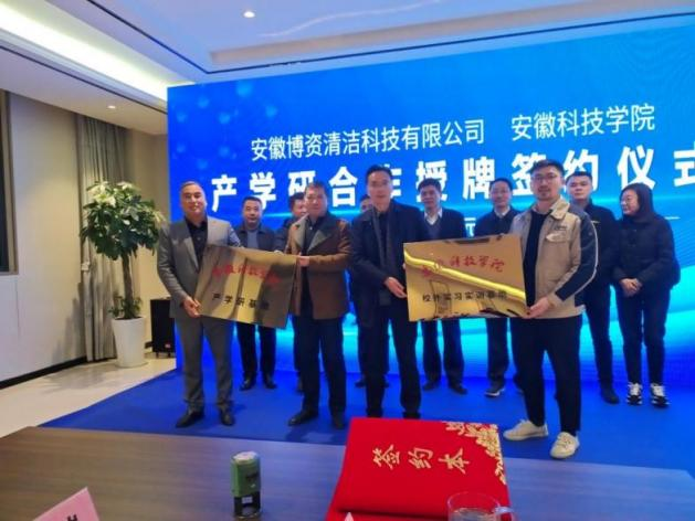 会上,李子荣代表学校与企业签订了共建“安徽博资纤维素多孔材料工程技术中心”协议、产学研合作协议、半岛app官方在线入口实习实训基地协议、技术开发(委托)合同。王强、朱发贵、赵永滨和王汉民共同为共建工程技术中心揭牌;黄树桥和李子荣为半岛app官方在线入口产学研基地和校外实习实训基地授牌。