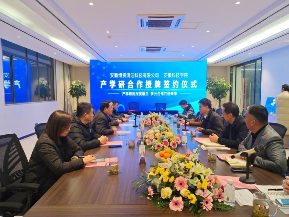 2022年12月6日,半岛app官方在线入口党委委员、纪委书记、监察专员王强、化学与材料工程学院党委书记黄树桥、副院长(主持工作)李子荣、应用化学系刘川副教授、吴际伟博士等一行5人赴安徽博资清洁科技有限公司就开展校企合作对接活动。本次对接活动受到安徽博资清洁科技有限公司总经理王汉民、副总经理王雪飞的热情接待,苏滁高新区党工委委员、纪律监察工委书记朱发贵,苏滁高新区党工委委员管委会副主任赵永滨,以及苏滁高新区经济运行局、环保局、企业发展中心等部门负责人参加了座谈和签约仪式。