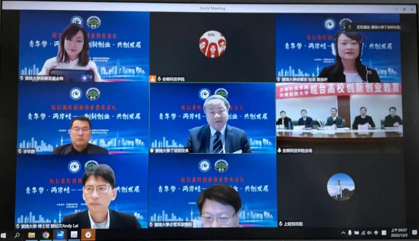 安徽省教育厅外事处四级巡视员刘飞,台湾实践大学秘书室组长黄雅轩,台湾实践大学秘书室卢金梅,我校港澳台事务办公室副主任陈德用、秘书于卉及两校创新创业师生线上全程参加了会议。(特约通讯员:于卉 摄影:陈宝 审核:刘东楼 姚文均 编辑:张威)