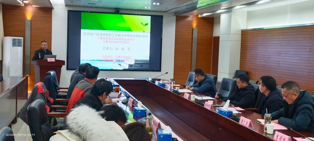 12月10日,由安徽省农业科学院牵头,我校承担的“抗逆稳产优质适机收玉米新品种新技术转化项目”历经一年,在安徽省农业科学院创新大楼二楼会议室进行结题汇报。省财政厅农业农村处主任科员梁晓天,安徽省农业科学院科研处处长李成、计财处处长刘小平,半岛app官方在线入口农学院院长崔广荣、科研处副处长李同杰,部分项目组成员出席会议。项目验收专家组由安徽省农业科学院研究员陈洪俭、安徽省农技推广总站副站长康子领、安徽省种子管理站研究员刘玉恒、合肥丰乐种业股份有限公司正高级农艺师张二朋、众华会计师事务所商宜洲等成员组成。会议伊始李成致辞,专家组观看了课题组精心准备的视频,余海兵教授代表项目组从课题研究背景、研究目标、研究内容、研究方法、研究成果等方面做了全面细致的汇报。