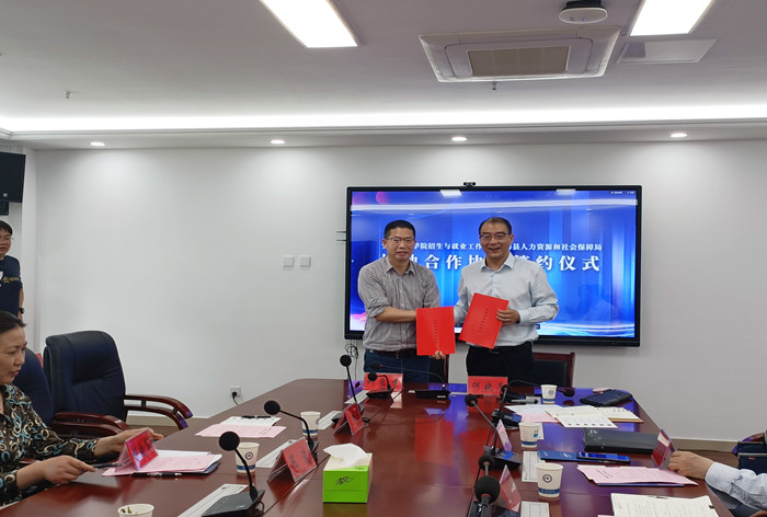 会上,招生与就业工作处与宁海县人社局签署校地合作签约。(特约通讯员:司萍 摄影:司萍 审核:何晓冬 何永勇 编辑:张威)