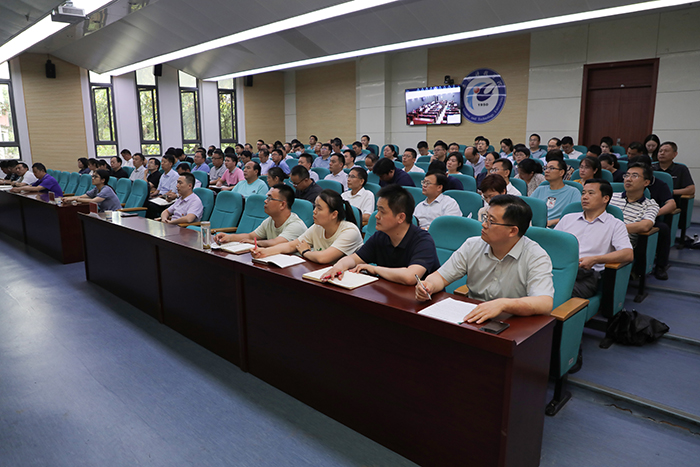 6月29日下午,党委书记时伟以“深入学习贯彻党的二十大精神,全面领会科教兴国战略,加快现代化人才支撑步伐”为题,在会议中心一楼报告厅为党员干部师生讲授主题教育专题党课。省委主题教育第十二巡回指导组成员现场指导。专题党课由党委委员、宣传(统战)部部长何永勇主持。