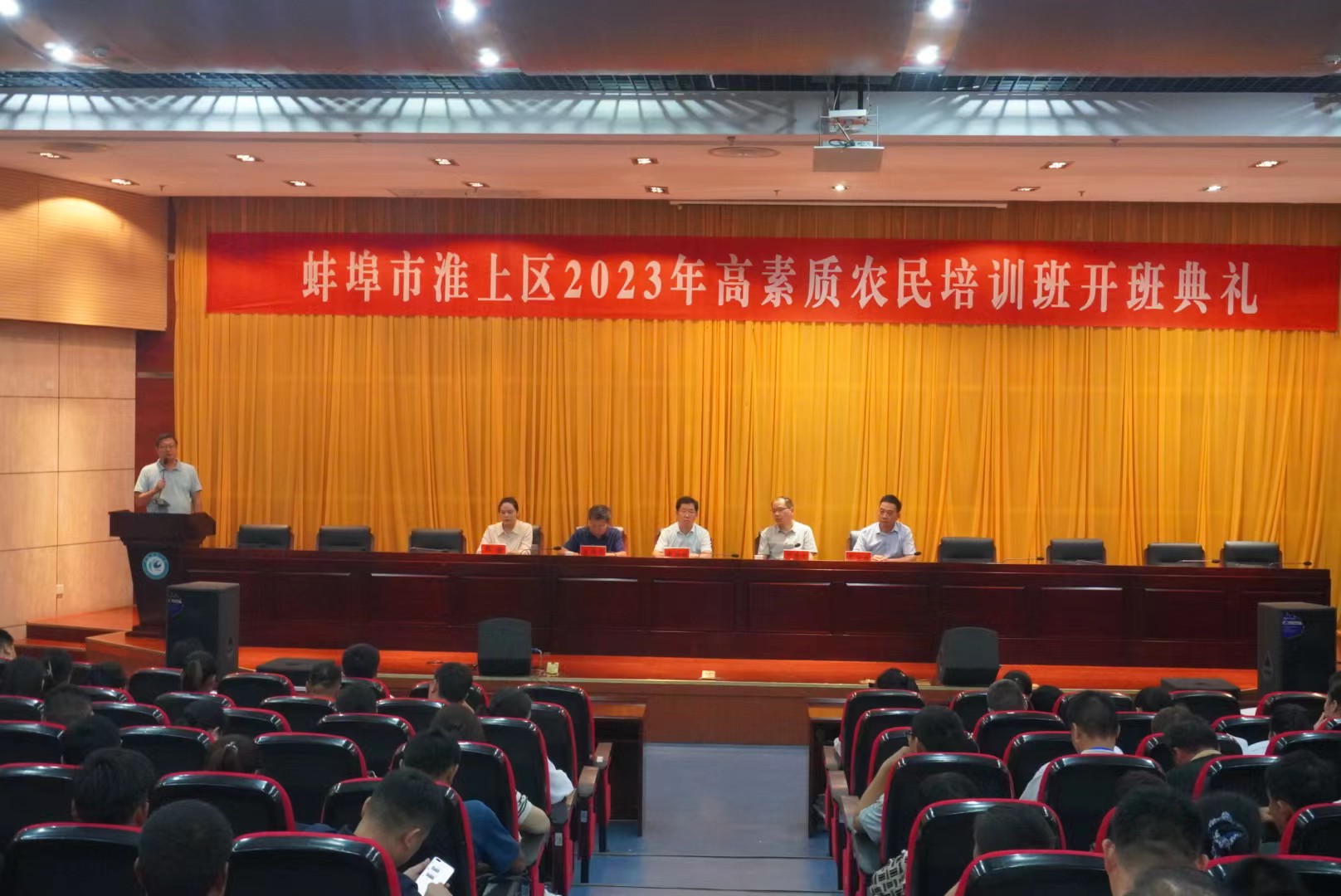为全面助推蚌埠市乡村振兴,提升基层农业技术推广人员业务素质和技能水平,7月13日上午,2023年蚌埠市淮上区高素质农民培训班在我校开班。蚌埠市淮上区委常委、组织部部长赵海超,淮上区农综站站长吴言柱,我校管理学院党委书记丁景良、院长陈传万、副院长郑谦出席开班典礼,来自蚌埠市辖区150名农村发展带头人参加了开班典礼。典礼由丁景良主持。