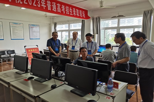 7月20日下午,安徽省本科一批次录取阅档工作正式开始。校党委书记时伟,党委副书记、院长李震,党委委员、副院长李升和,党委委员、副院长王孝义深入招生录取现场,检查指导一本批次录取工作,看望慰问招生录取工作人员。