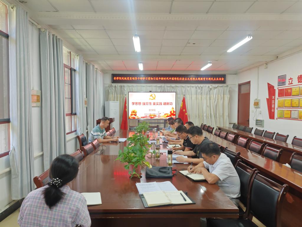 8月31日下午,农学院在学院会议室召开处级党员领导干部学习贯彻习近平新时代中国特色社会主义思想主题教育专题民主生活会。主题教育专题民主生活会第二督导组成员、校党委学工部部长、学生处处长黄立义到会指导。学院处级党员领导干部、党委委员、工会主席、党员群众和青年教师代表等参加会议。会议由学院党委记何世潮主持。