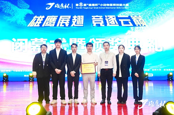 9月14至15日,由中国兽医协会、深圳市瑞鹏公益基金会联合主办,吉林大学和新瑞鹏宠物医疗集团共同承办的第八届“雄鹰杯”小动物医师技能大赛总决赛在吉林大学举行。大赛共有来自全国117所本科与高职院校学生同台竞技,代表我校参赛的动物科学学院本科生马婷、张亚宁、郭辉、叶鑫四位同学以深厚的理论功底、熟练的操作技能、默契的配合、沉稳的发挥,荣获大学生组团体二等奖。