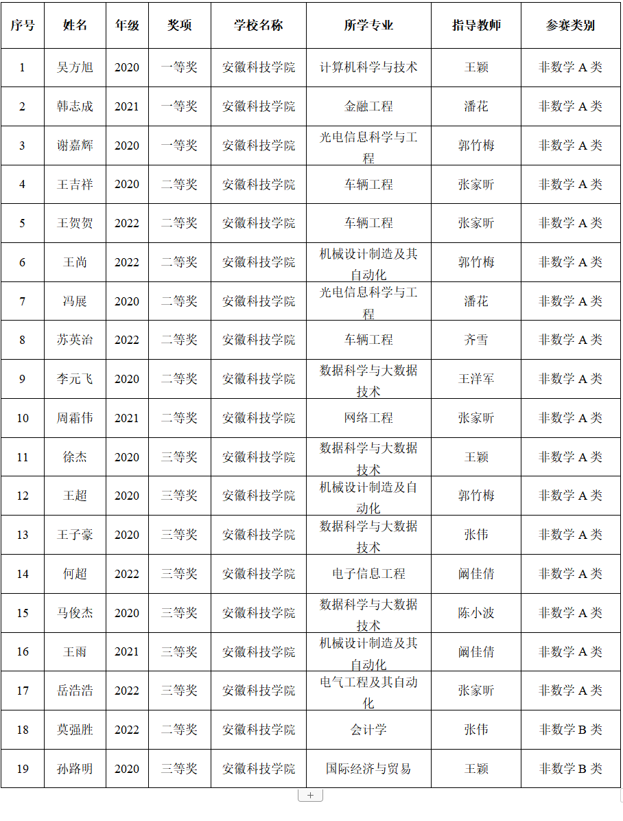 12月26日,第十五届全国大学生数学竞赛初赛结果揭晓,本次竞赛以笔试闭卷方式进行,安徽40所高校近5000名数学爱好者同台竞技。经过激烈角逐,我校学子荣获非数学组一等奖3项,二等奖8项,三等奖8项。
