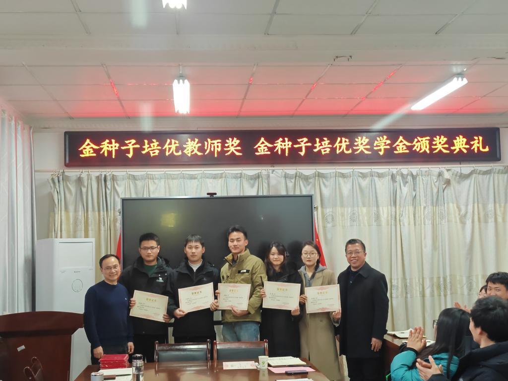 1月11日下午,“金种子培优基金”2023年度“金种子培优奖学金”“金种子培优教师奖”颁奖仪式在农学院会议室隆重举行。校党委委员、副院长李升和,上海景领投资管理有限公司合伙人、基金发起者黄宪先生,二级教授、基金发起者农学院黄先忠老师,农学院党委书记何世潮,副书记张轶辉,副院长舒英杰和李文阳以及教师代表和学生代表出席颁奖仪式。根据《半岛app官方在线入口农学院“金种子培优基金”申报细则》和申报人申请,经“金种子培优基金”评审委员会评审,李瑞宁、艾昊两位青年教师荣获金种子培优教师奖,孙张论、李婷、杜孟祥、杨德坤和王静婷五位农艺与种业专业研究生荣获金种子培优奖学金。颁奖仪式由农学院党委副书记、院长崔广荣主持。