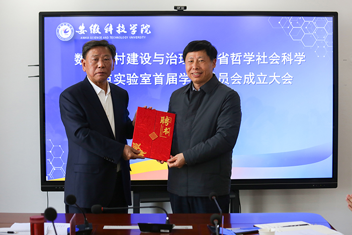 3月19日,我校数字乡村建设与治理安徽省哲学社会科学重点实验室学术委员会在龙湖校区成立。中国工程院院士、合肥工业大学杨善林教授受聘担任重点实验室学术委员会主任委员。合肥工业大学科研院副院长梁昌勇教授,中国科学技术大学EMBA中心主任、安徽省发展战略研究会会长刘志迎教授,安徽农业大学经济管理学院会计学系主任孟枫平教授应邀出席成立仪式并受聘担任学术委员会委员。校党委书记、重点实验室主任时伟出席并讲话。会议由校党委委员、副院长王孝义主持。