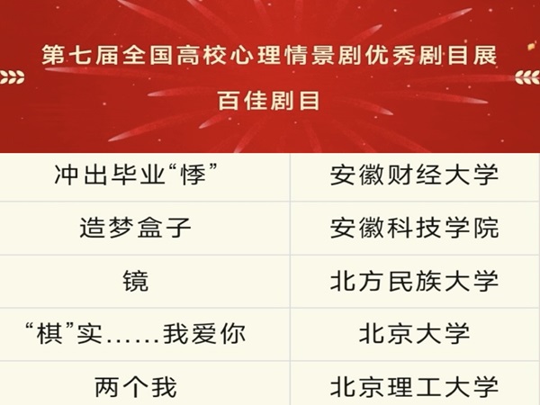 近日,由中国心理学会心理危机干预工作委员会与国家心理健康与精神卫生防治中心联合主办的第七届全国高校心理情景剧优秀剧目展演落幕。我校组织报送的心理剧《造梦盒子》荣获全国百佳剧目。