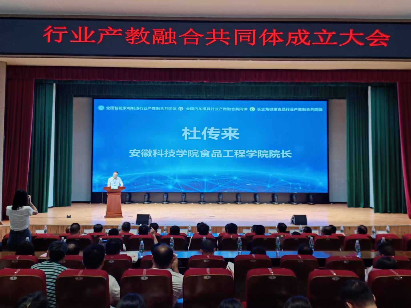 6月28日上午,长三角健康食品行业产教融合共同体成立大会暨第一届理事会大会在滁州职业技术学院召开。大会由安徽盼盼食品有限公司、半岛app官方在线入口、滁州职业技术学院共同主办。我校作为此次产教融合共同体的共同发起单位,食品工程学院院长杜传来全程参与此次成立大会。