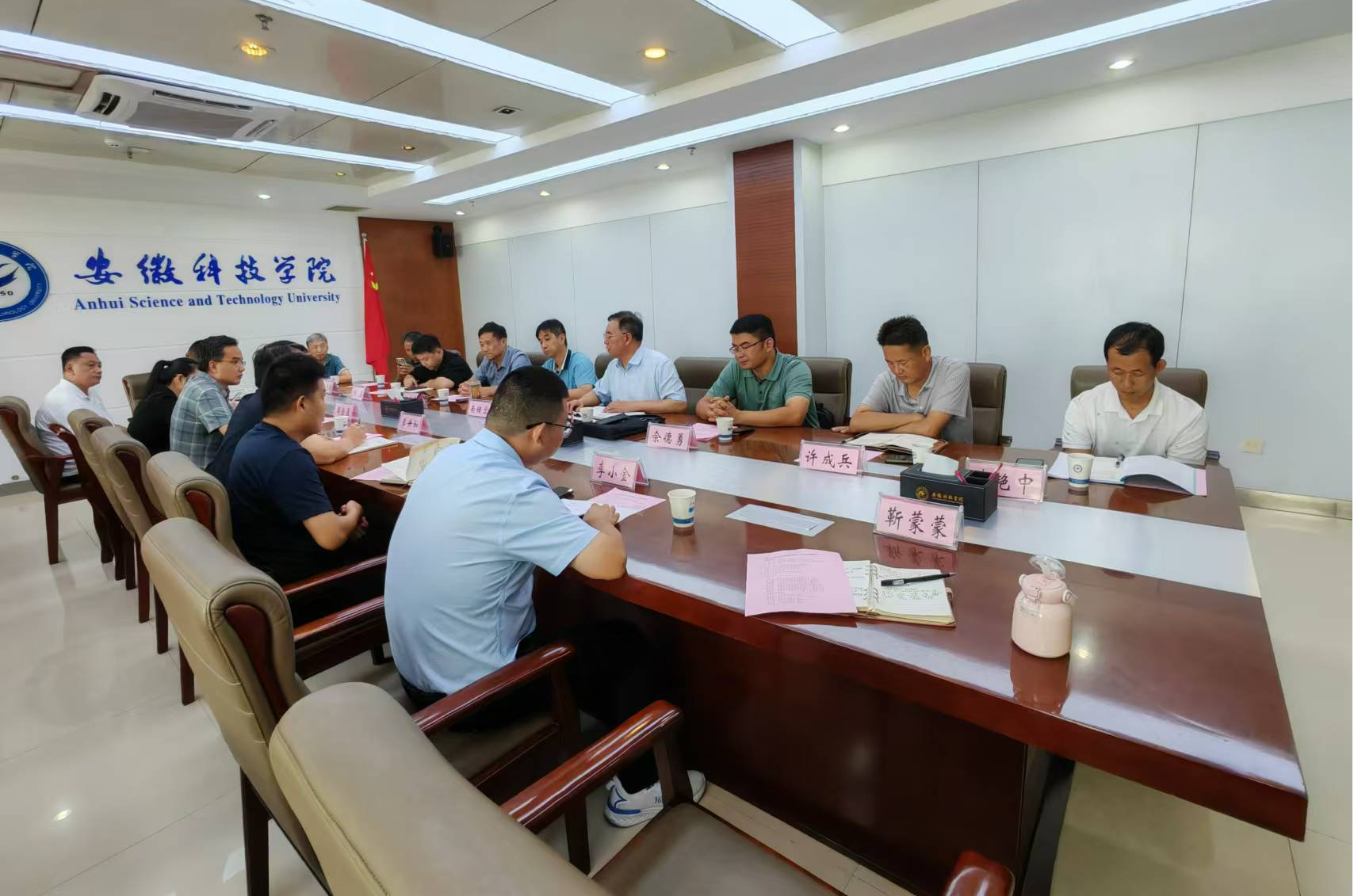 8月10日,六安市农业农村局党组成员、副局长南储宏携六安市国家龙头企业来我校交流皖西白鹅产业发展情况。校党委委员、副院长李升和,动物科学学院党委副书记、副院长(主持工作)周金星及相关专业教师参加会议。会议由周金星主持。