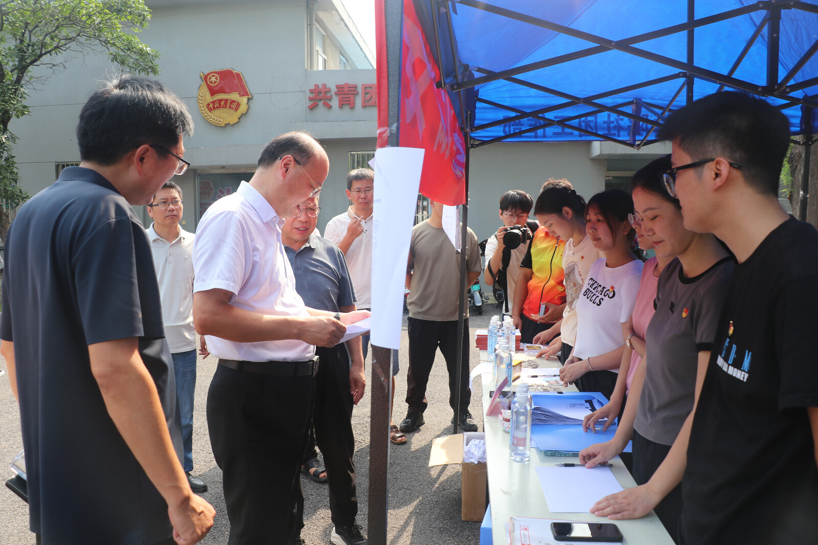 校党委书记时伟,党委委员、副院长王孝义到现场指导迎新工作。时伟和王孝义仔细查看新生发放材料,与新生亲切交谈,询问来校情况及适应新环境状况,鼓励新生们要尽快适应新的环境,努力学习专业知识,积极参与校园活动和社会实践,为自己的未来发展打下坚实的基础。强调全体迎新工作人员要以细致的态度,周到的服务迎接同学们的到来,在做好服务工作的同时要注意个人防暑。