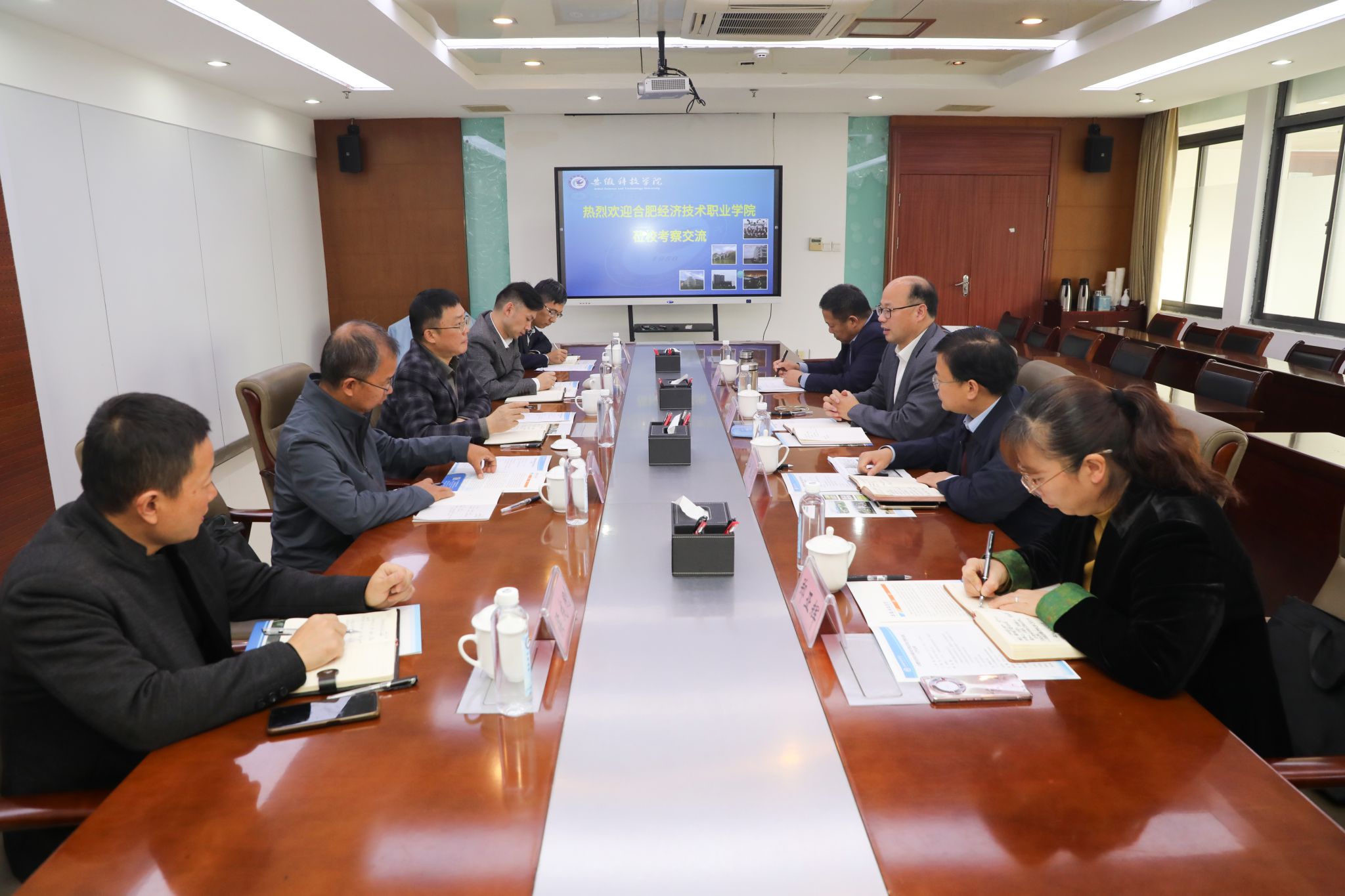 11月8日上午,合肥经济技术职业学院党委副书记、常务副院长马丰年率党政办、实训中心以及资产管理科等部门负责人莅临我校考察交流。我校党委委员、副院长王孝义及对口部门负责人热情接待了马丰年一行。