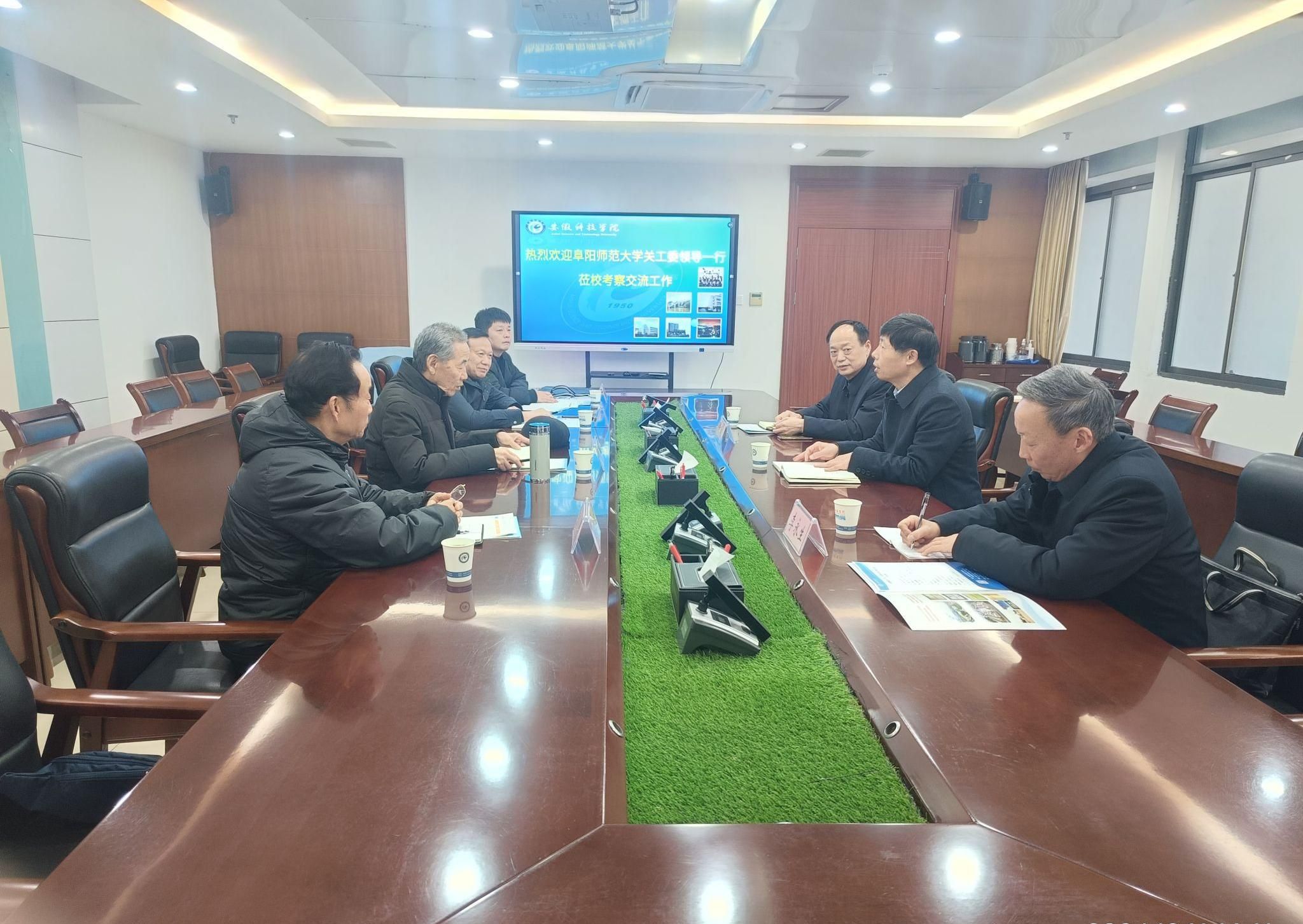 12月11日下午,阜阳师范大学原党委副书记、关工委常务副主任郑禹,关工委副主任郭卫东,离退休工作处处长高奇志,离退休工作处秘书朱佳亮等来我校考察交流,校党委书记时伟热情接见了郑禹一行,校关工委秘书长、离退休党总支书记、离退休工作处处长时乾,关工委副秘书长李永生等参加交流。