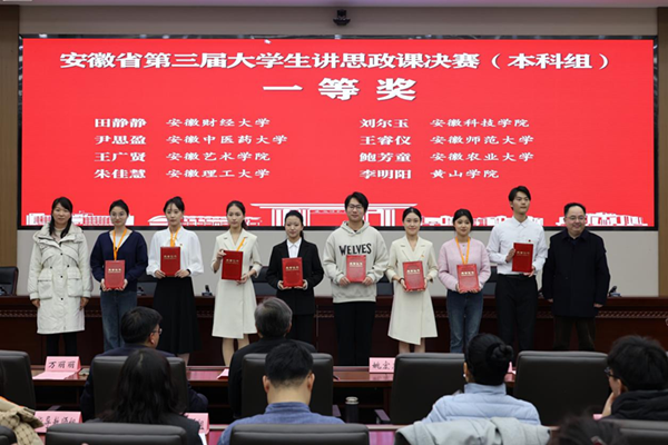 12月25日,由中共安徽省委教育工委主办,安徽师范大学承办,主题为“七十五载薪火传承,千秋伟业奋斗有我”的第三届安徽省大学生讲思政课决赛圆满落幕。我校化学与材料工程学院刘尔玉同学荣获一等奖。