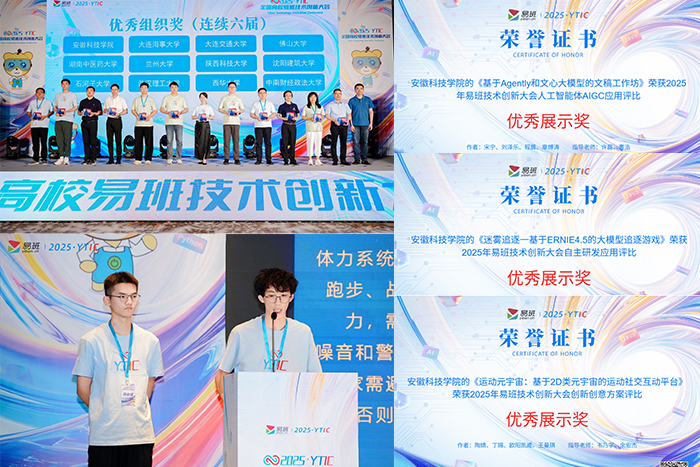 5月22日至26日,2025年全国高校易班技术创新大会在广东省珠海市成功举办。本次活动吸引来自全国104所高校、400余位易班指导老师及学生技术骨干参与,全国203份作品通过专家评审脱颖而出。我校选送的作品《易迷雾追逐——基于ERNIE4.5的大模型追逐游戏》《运动元宇宙:基于2D类元宇宙的运动社交互动平台》《基于Agently和文心大模型的文稿工作坊》分别荣获自主研发应用、创新创意方案、人工智能体AIGC应用三个赛道优秀展示奖。我校再次荣获优秀组织奖。