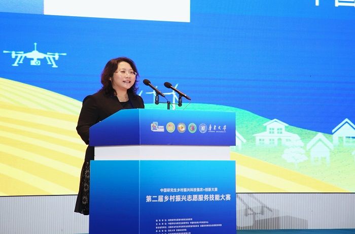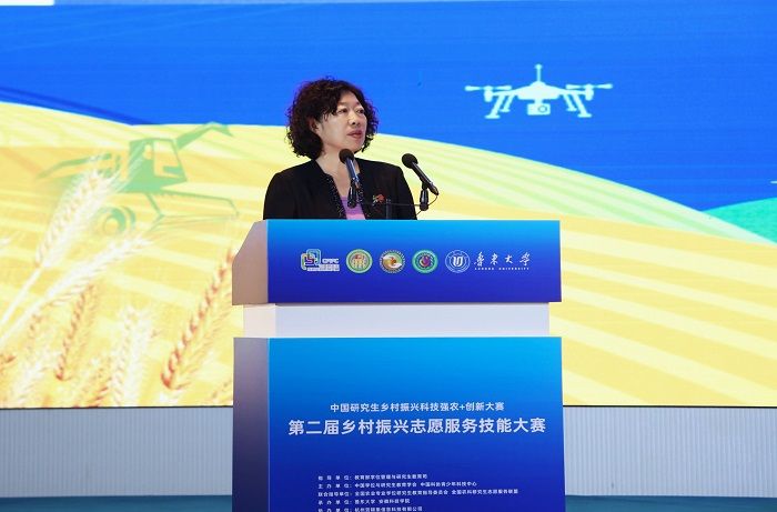 赵瑜在开幕式上致辞,她强调,今年是习近平总书记对研究生教育工作作出重要指示五周年,也是《教育强国建设规划纲要(2024——2035年)》贯彻落实开局之年,纲要明确提出“完善拔尖创新人才发现和培养机制”。研究生教育作为高水平拔尖创新人才培养的主渠道,在支撑高水平科技自立自强、高水平人才自主培养,建设世界重要人才中心和创新高地中发挥关键作用。他指出,志愿服务是中国式现代化建设与乡村振兴的重要力量,去年印发的《关于健全新时代志愿服务体系的意见》充分体现了党中央对志愿服务事业的高度重视。乡村振兴志愿服务技能大赛作为科技强农+创新大赛的重要组成,引导研究生关注“三农”、涵养家国情怀,用专业所长助力 “新农村、新农业、新农民、新生态” 建设。本届大赛规模实现翻番,同比增长超 160%,充分彰显了研究生将农业农村需求与科研理论结合、投身乡村振兴的热情与成果。