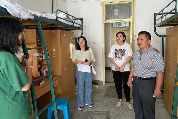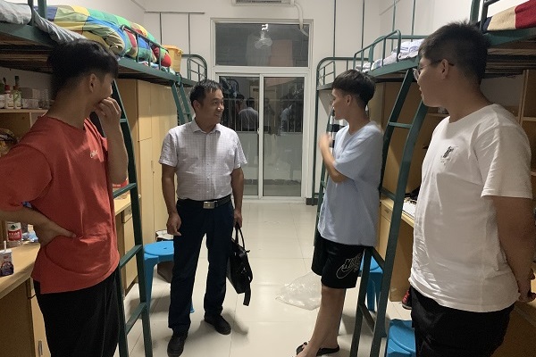 9月16日下午,动物科学学院党总支书记汪洋、院长刘德义、副书记李忠在新生辅导员李焱、贾方敏、胡文丽的陪同下深入宿舍,看望慰问2020级新生。
