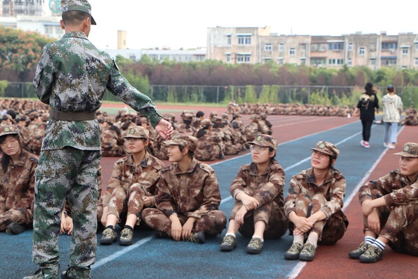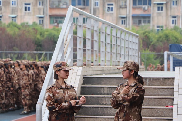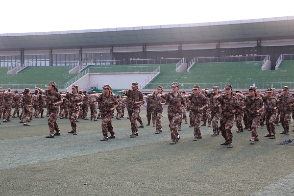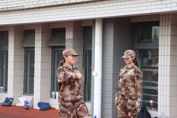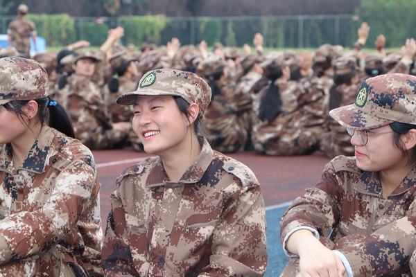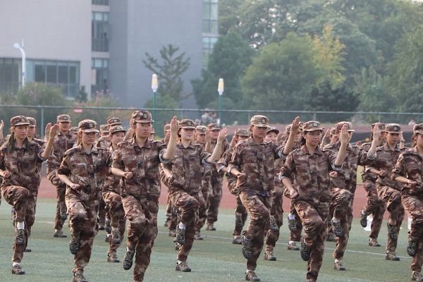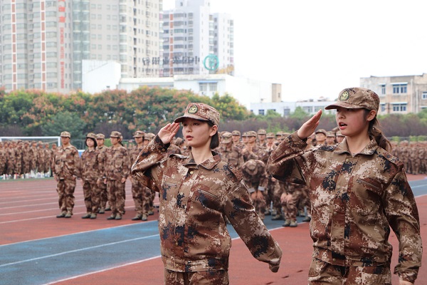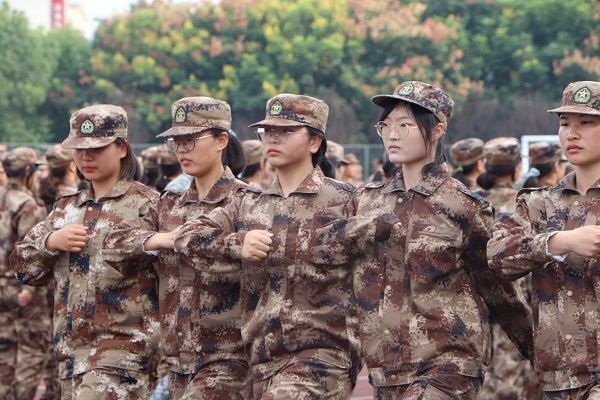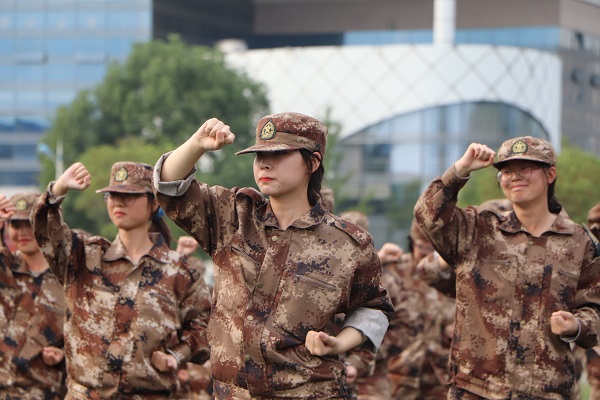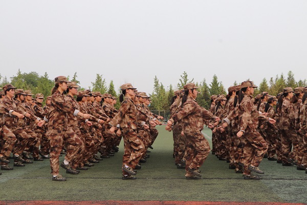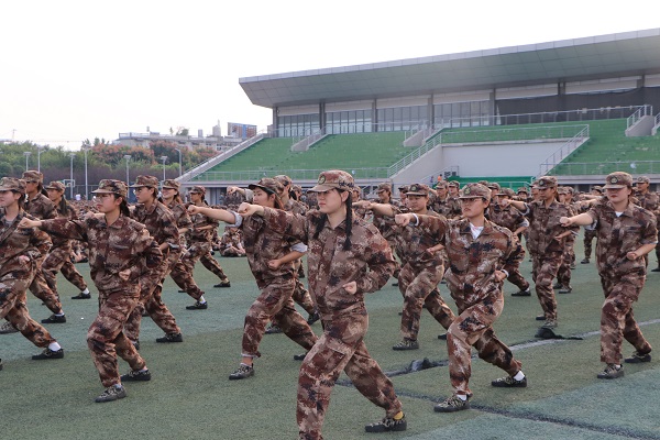 今年与往年不同的是,女生连队也开展了军体拳训练,军体拳所体现的是由拳打、脚踢、摔打、夺刀、夺枪等格斗动作组合而成的一种拳术。在教官的指导下,学生们认真学习一招一式,从一开始的不熟悉,到越来越熟练。出拳、旋转、勾拳,每个动作都打得有模有样,在保持方阵队形的前提下,她们跟着教官练习分解动作,保持每个动作的稳定性与高标准,成为训练场上一道靓丽的风景。