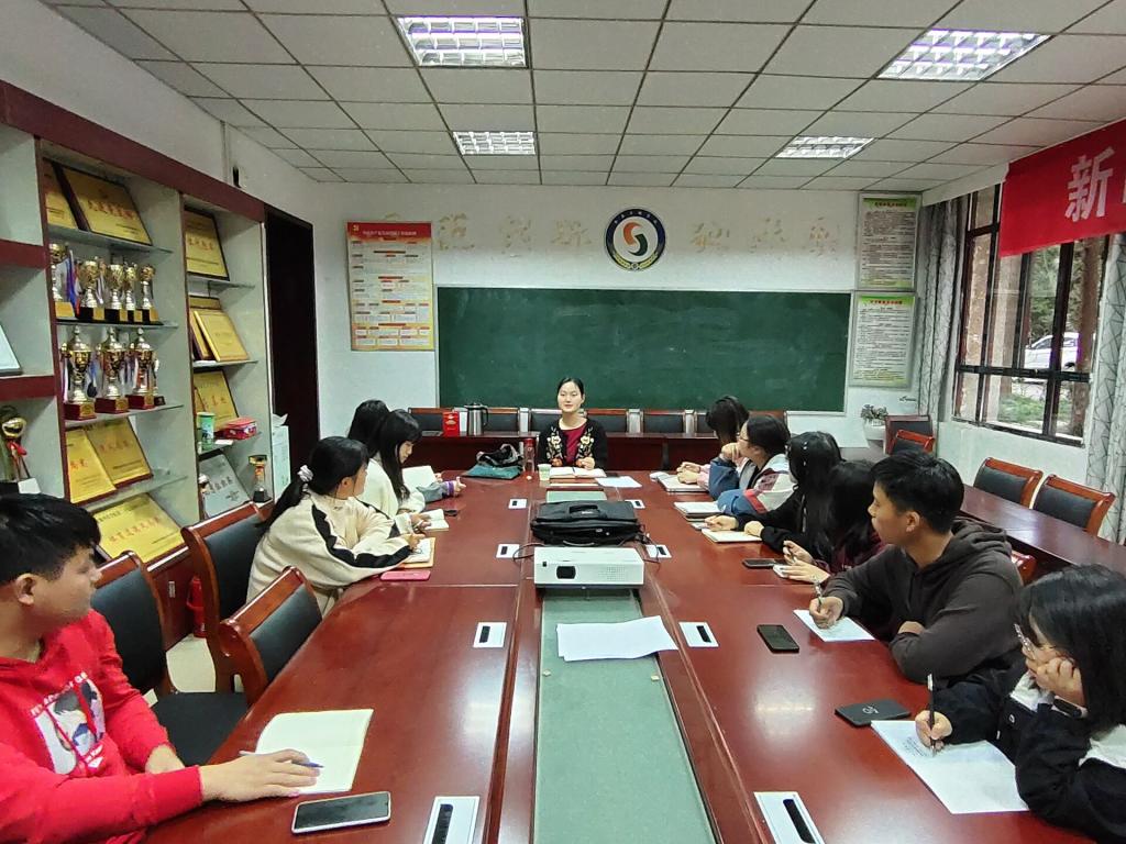 会议伊始,时韩荣就心理委员的工作职责与内容向与会成员进行了详尽阐述,并对心理委员的角色定位做了重点讲解,要求大家明确自身责任,了解自身服务角色,进一步贴近学生实际,深入了解学生们的心理健康状况。关于宿舍心理联络员,时韩荣强调到各班要尽快选出每个宿舍的心理联络员,充分发挥心理委员与宿舍心理联络员的纽带作用,注意观察寝室人员的日常生活情况,做好四类排查工作。随后,郭宝怡关于学院日常心理活动工作的安排对与会成员做了详细的部署。
