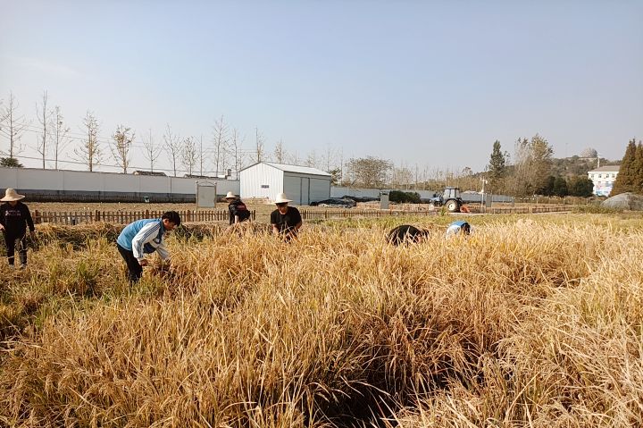 10月31日,农学院以“我为校庆添光彩,农科学子在行动”为主题,组织2020级新生部分班级同学在种植科技园水稻试验田开展劳动教育。