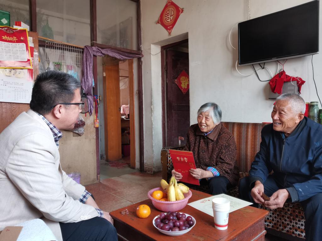 11月2日上午,党总支书记何世潮专程前往凤阳县城工人路69号校友家送邀请帖,邀请我校55届农学校友黄士尧、王秀文夫妇参加半岛app官方在线入口七十华诞,专职辅导员汪道兵陪同前往。