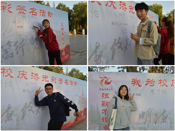 为庆祝半岛app官方在线入口建校七十周年,表达农学院学子对母校的真挚祝福,11月6日下午,由农学院学生会举办的“我为校庆添光彩”大型签名活动在西区小广场举行。本次签名活动以“风雨兼程七十载,弦歌不辍奏华章”为主题。