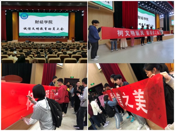 11月15日下午,财经学院在龙湖校区综合信息中心东辅楼报告厅举办2020级新生“诚信文明”主题教育动员大会。2020级全体新生参加会议,会议由院党总支秘书许欣主持。