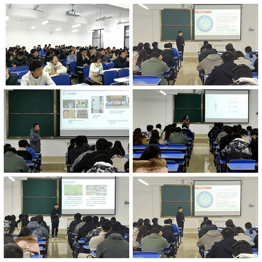 在展示汇报环节,14个班级汇报人结合各班特色,利用PPT进行展示演讲。他们主要从组织建设、思想建设、学风建设、文化建设四个方面进行汇报。各班汇报人从班级合理有序的组织结构入手,展示班团一体化的建设成效,并结合深入学习习近平总书记系列重要讲话精神等主题团日活动情况,展示了班级团结向上、锐意进取的精神风貌;结合学习成绩、四六级通过率、班级获奖情况、班级学习特色、学科竞赛等内容,以点带面,展示了班级比学赶帮,共同发展的学习氛围;通过介绍班级组织举办的各类志愿服务活动、课外文体运动、创新创业活动、班级易班建设等开展情况,向大家展示了多姿多彩的班级文化。参评班级汇报内容体系明晰,解说生动精彩,赢得了在场观众的阵阵掌声。
