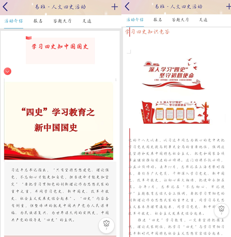 为了巩固“四史”学习成效,丰富学生的校园文化生活,人文学院于11月25日至12月3日开展了学习“四史”知识竞答比赛。
