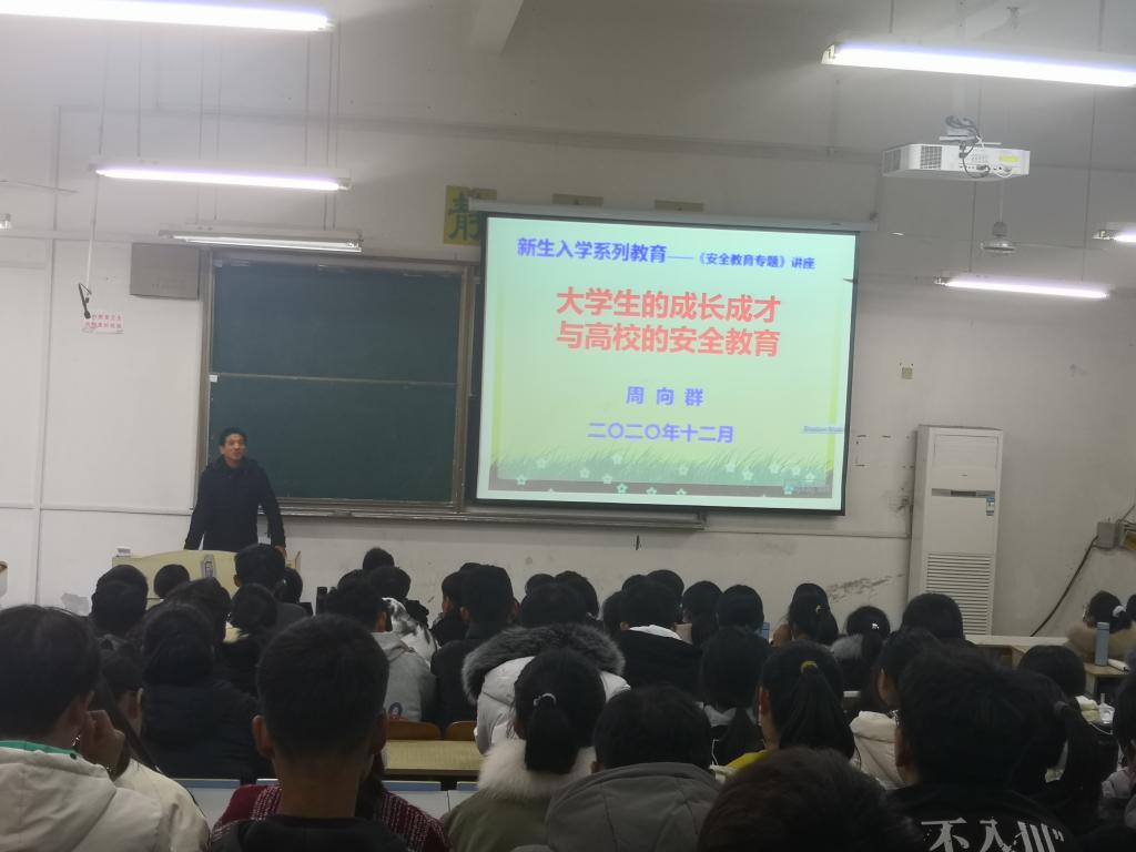 为进一步提升2020级新生安全意识,提高自我防范能力,12月4日下午,生命与健康科学学院在求知楼A104举办新生大学校园安全教育报告会。信息与网络工程学院正处级组织员周向群应邀担任主讲,学院专职辅导员刘国祥和黎冯梅老师以及2020级部分新生参加本次报告会。