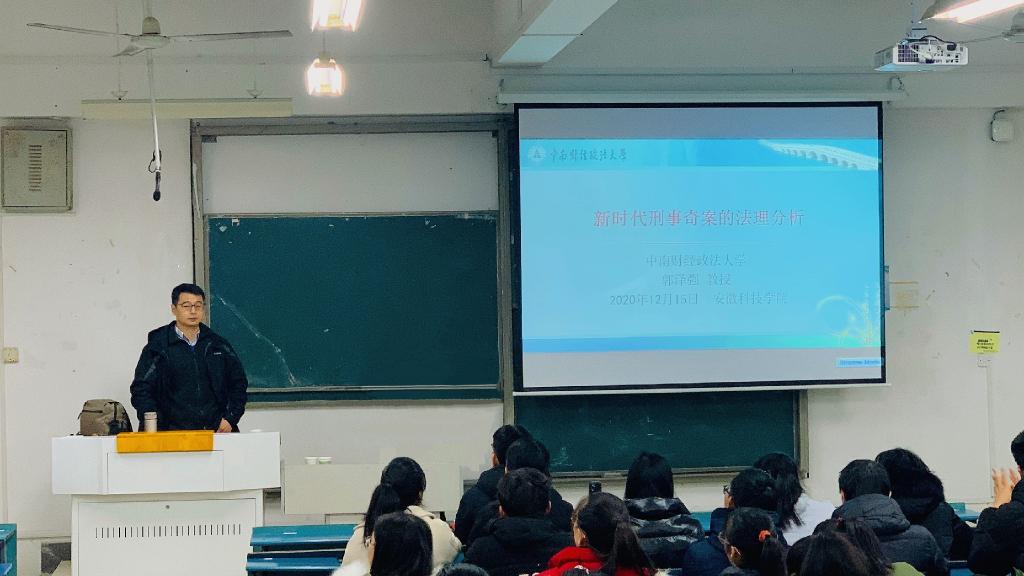 12月15日下午,应人文学院邀请,中南财经政法大学教授郭泽强来校,在新知楼A102教室举办了“新时代刑事奇案的法理分析”学术报告。报告由人文学院副院长李晓东主持。