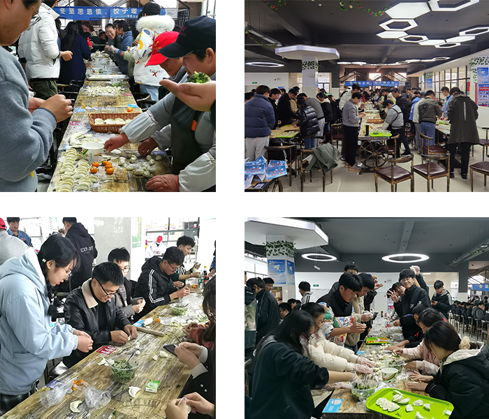 活动开始前,学院专职辅导员王培培、陈凯、崔北坤分别向各班级介绍了“冬至”的历史渊源、气候特征、节日习俗、天文意义等相关知识。活动中,同学们纷纷大显身手,他们以班级为单位,有的揉面团、有的切面段、有的擀饺子皮、有的包饺子,分工明确,团结合作,现场气氛活跃有序。