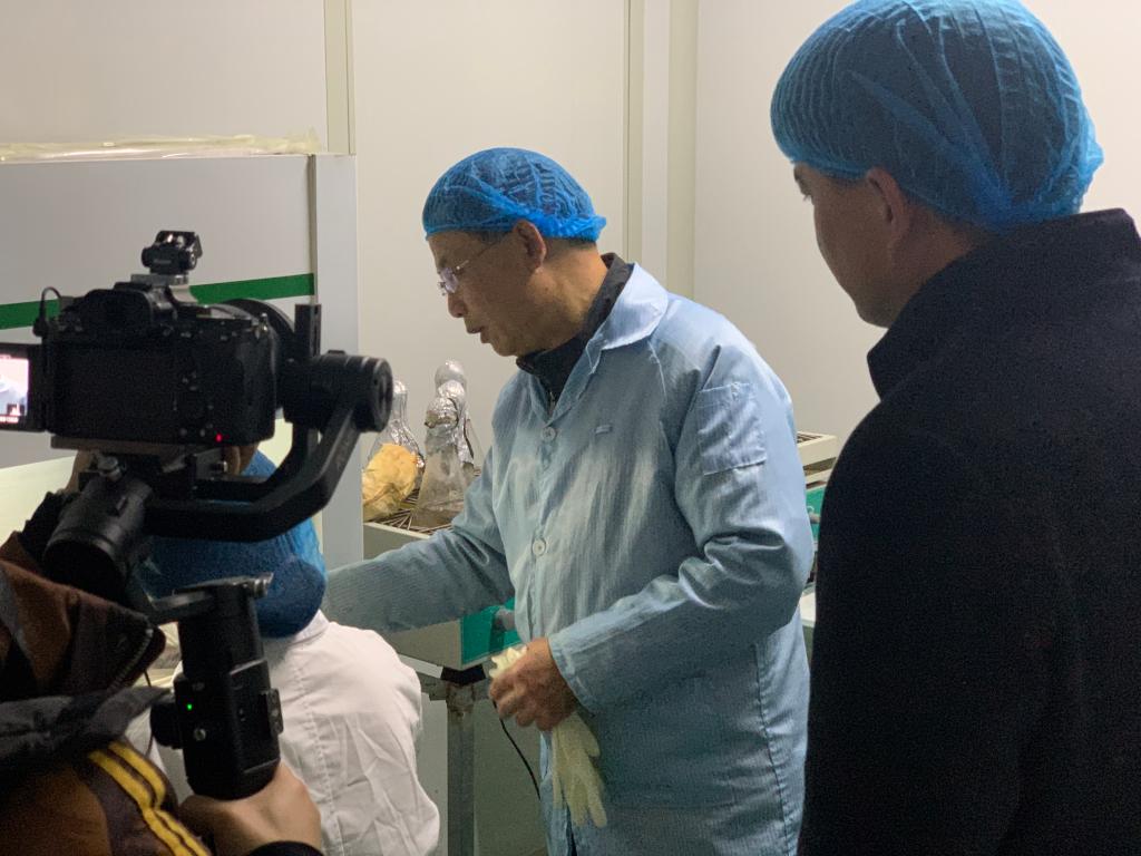 针对公司液体菌种制作环节的关键技术,何华奇进行了接种示范,并对液体菌种培养过程中易出现的问题进行指导。在平菇栽培大棚,对平菇出菇不整齐、转潮慢以及出菇后的菌糠利用等问题一一提出解决方案。