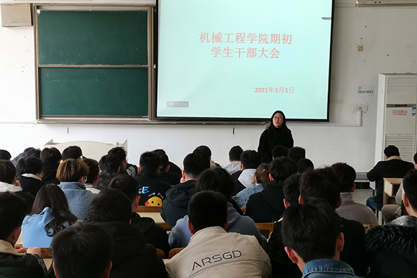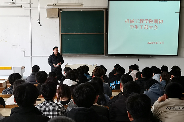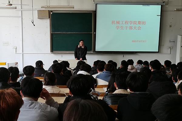 3月5日下午,机械工程学院在求A102教室召开新学期初学生干部会议。会议由辅导员孟凡生主持,机械工程学院党委副书记张程、辅导员谭博文出席会议,学院全体班级班长、团支部书记,学生会、社团负责人参加会议。