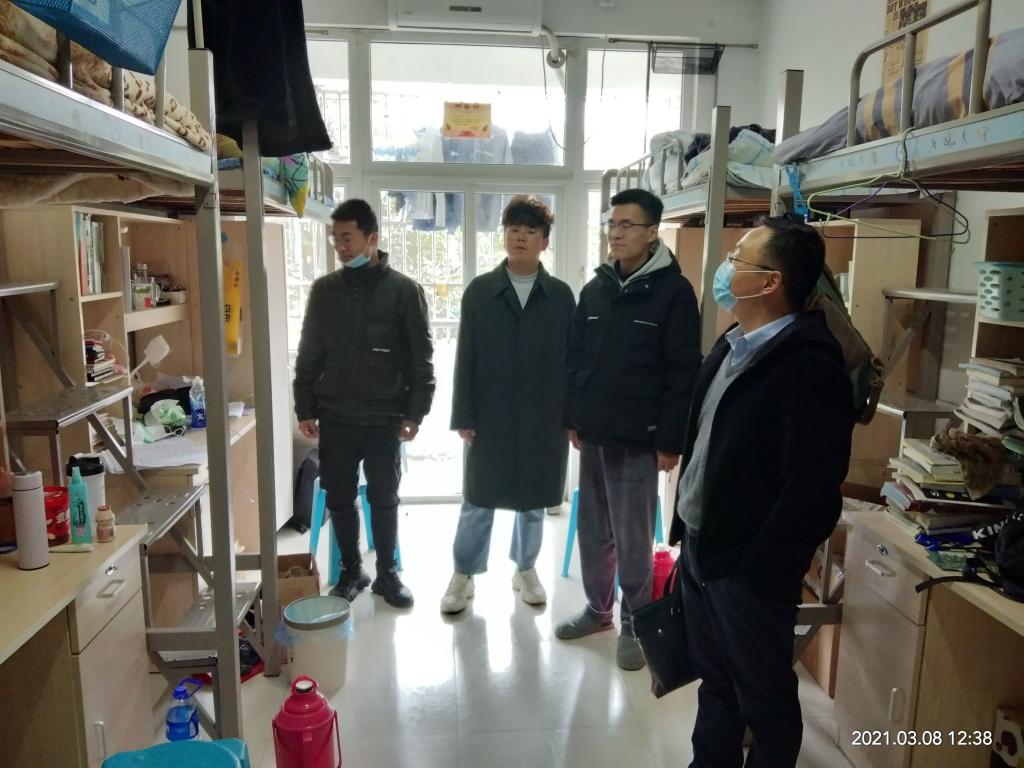 在学生宿舍,辅导员与同学们亲切交谈,仔细了解大家的寒假生活、询问同学们新学期的目标、查看学生宿舍的卫生情况,叮嘱学生在疫情防控常态化背景下,养成健康文明的生活习惯及营造干净舒适的生活环境的重要性。在毕业班学生寝室,辅导员们还详细了解了毕业班学生的考研初试情况、毕业论文进度及职业规划等情况,听取学生在学习、生活中存在的困难并给出相关建议。
