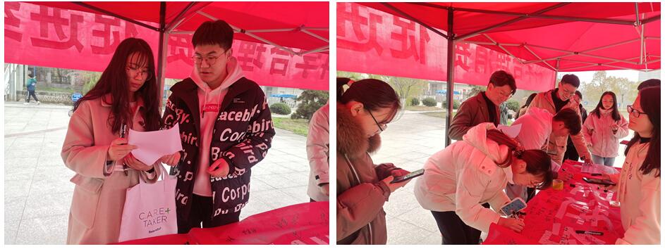 活动分为现场宣传和观影讲座两个部分。现场宣传主要通过悬挂横幅,邀请同学们在横幅上签字,深入学生寝室发放消费者权益保护宣传单,展出消费者权益保护宣传展板等方式开展。活动现场中,过往的同学们踊跃配合,积极签字。此外,法学学生党支部的学生党员们对前来咨询有关消费权益日问题的同学均予以耐心解答。