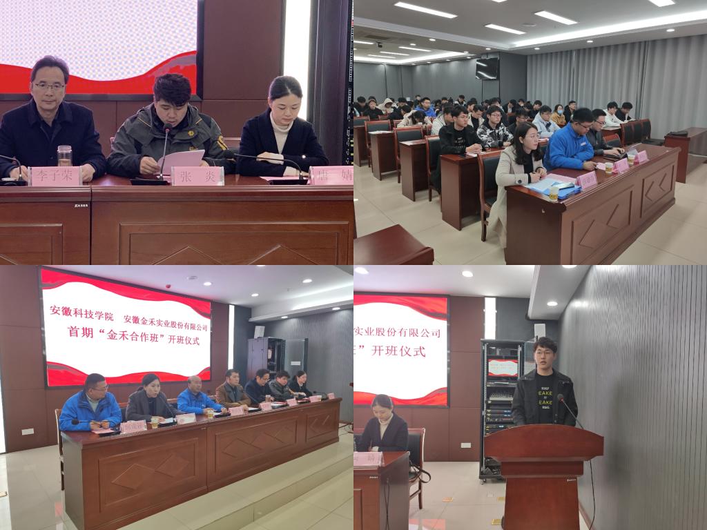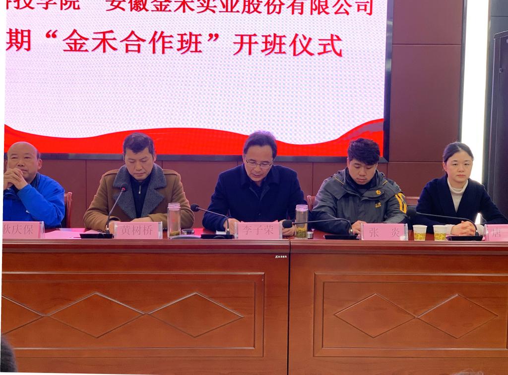 李子荣介绍了“金禾合作班”的育人目标、教学内容安排、管理架构,并就下一步推动双方成立产业学院提出了设想和建议。张炎宣读了《关于成立半岛app官方在线入口 安徽金禾实业股份有限公司首期“金禾合作班”的通知》文件,金禾班企方兼职班主任燕岩、院方兼职班主任薛璐莎和学生代表顾涛依次发言。