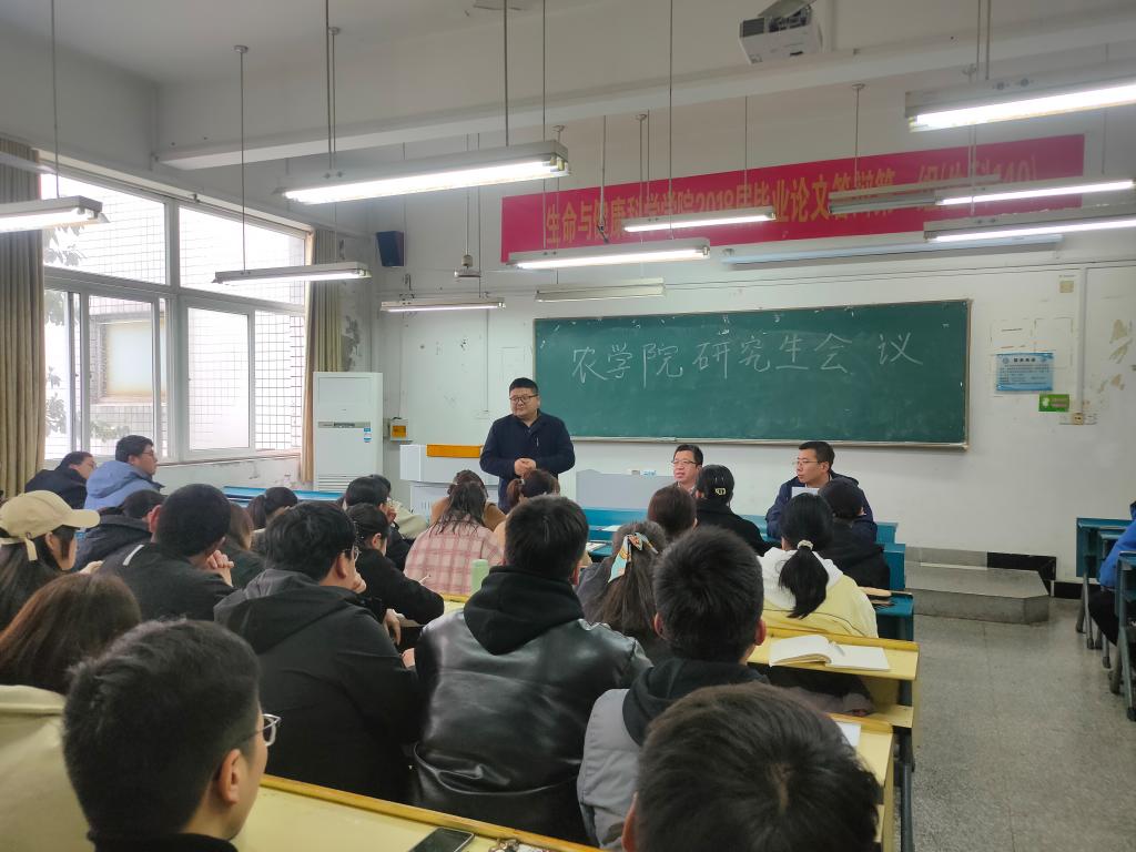 3月15日,农学院在求知楼B101召开农艺与种业领域全体研究生会议。农学院党委书记何世潮、副院长李文阳、研究生秘书王小华,2019级、2020级农艺与种业领域全体研究生参加会议,会议由李文阳主持。