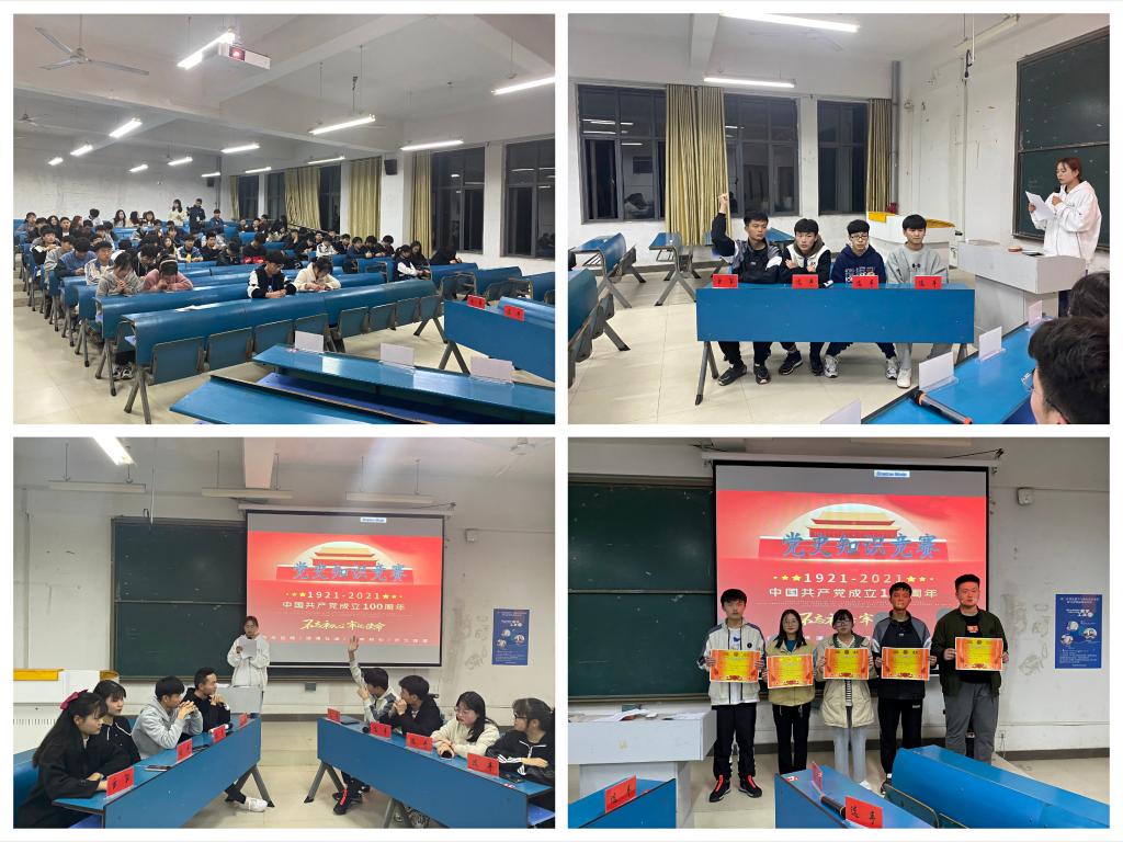为庆祝中国共产党成立100周年,3月27日,资源与环境学院学生会于新知楼B103举办党史知识竞赛。此次比赛共有八支队伍参加,评委由资源与环境学院学生会执行主席和部分部长级组成。