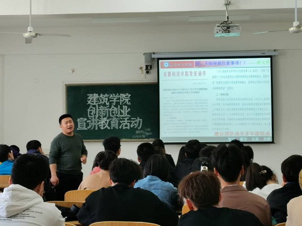为进一步落实大学生创新创业训练计划,培养大学生创新创业能力,3月29日中午,建筑学院在致知楼C306成功开展创新创业宣讲教育活动。本次教育活动由学院副院长张伟主讲,专业课教师刘昕烁和学院非毕业班班长、团支书参加本活动。活动由建筑学院团委书记沈德艳主持。
