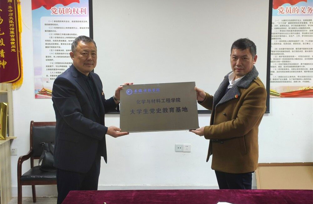 活动前,学院党委书记黄树桥、院长宋常春、党委副书记张炎与蚌埠革命历史陈列馆馆长段广祥举行了党史学习教育基地、爱国主义教育基地挂牌仪式。