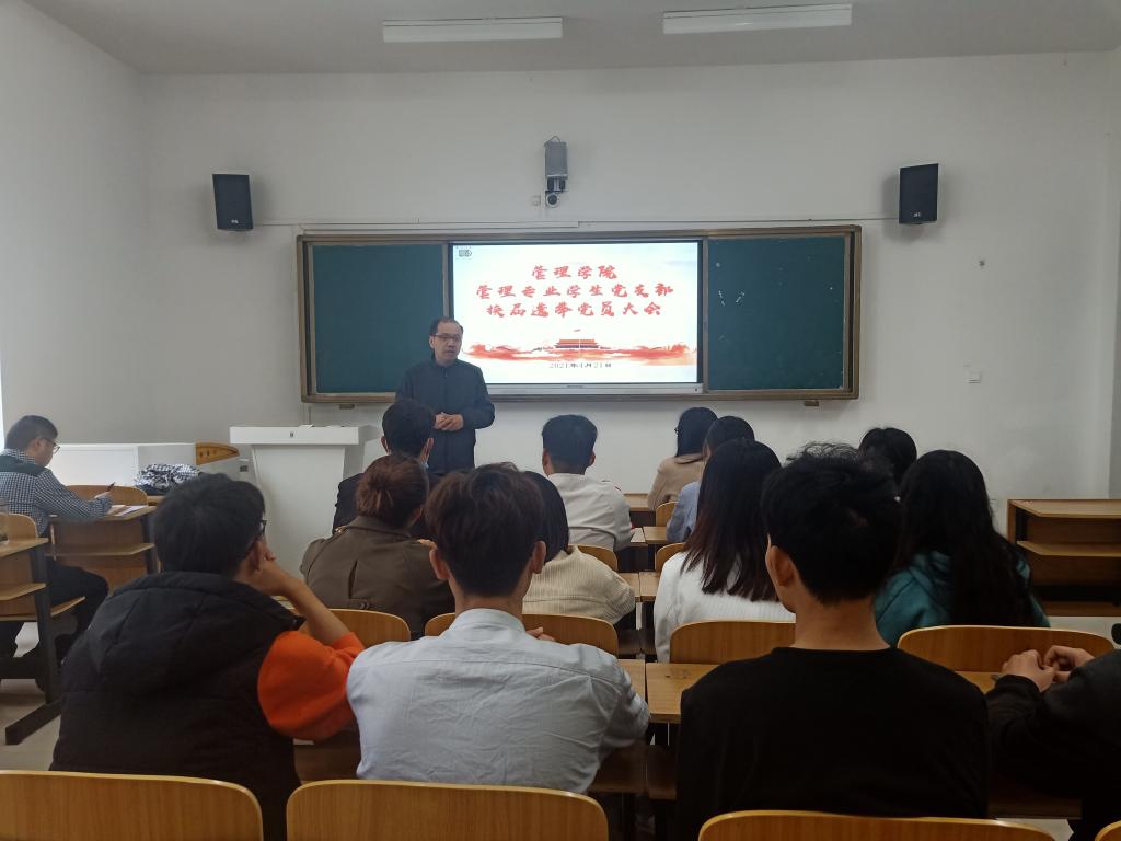 4月21日下午,管理学生党支部于致知楼C201教室组织召开党员大会,开展支部换届选举工作,会议由支部书记李永鹏主持,党委书记丁景良出席会议并做指导讲话。