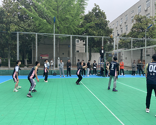 决赛分新老生两组进行:新生组由中韩201对阵工业设计201,老生组由机械电子181对阵自动化193。在此起彼伏的欢呼声中,决赛正式开始,一声哨响,双方队员展开了精彩的比拼,队员们互相协作,各施球技,完成一次次拦网、救球、扣杀,全员精力高度集中,比分咬紧,你追我赶。场下观众激情呐喊,加油助威,每一次精彩的传球与得分都迎来了阵阵掌声,整个赛场热火朝天。决赛期间,机械工程学院党委副书记张程,辅导员孟凡生来到现场,为参赛班级指导加油。