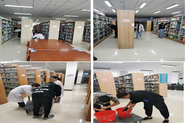 在图书馆突击队工作人员的细心指导和示范引领带动下,党校学员们很快进入到工作状态。根据书库布局,大家分头行动,打水、擦架、整架、扫地……书库顿时呈现出一片繁忙景象。大家齐心协力,配合默契,经过一个多小时的辛勤劳动,书库变得更加明亮整洁。